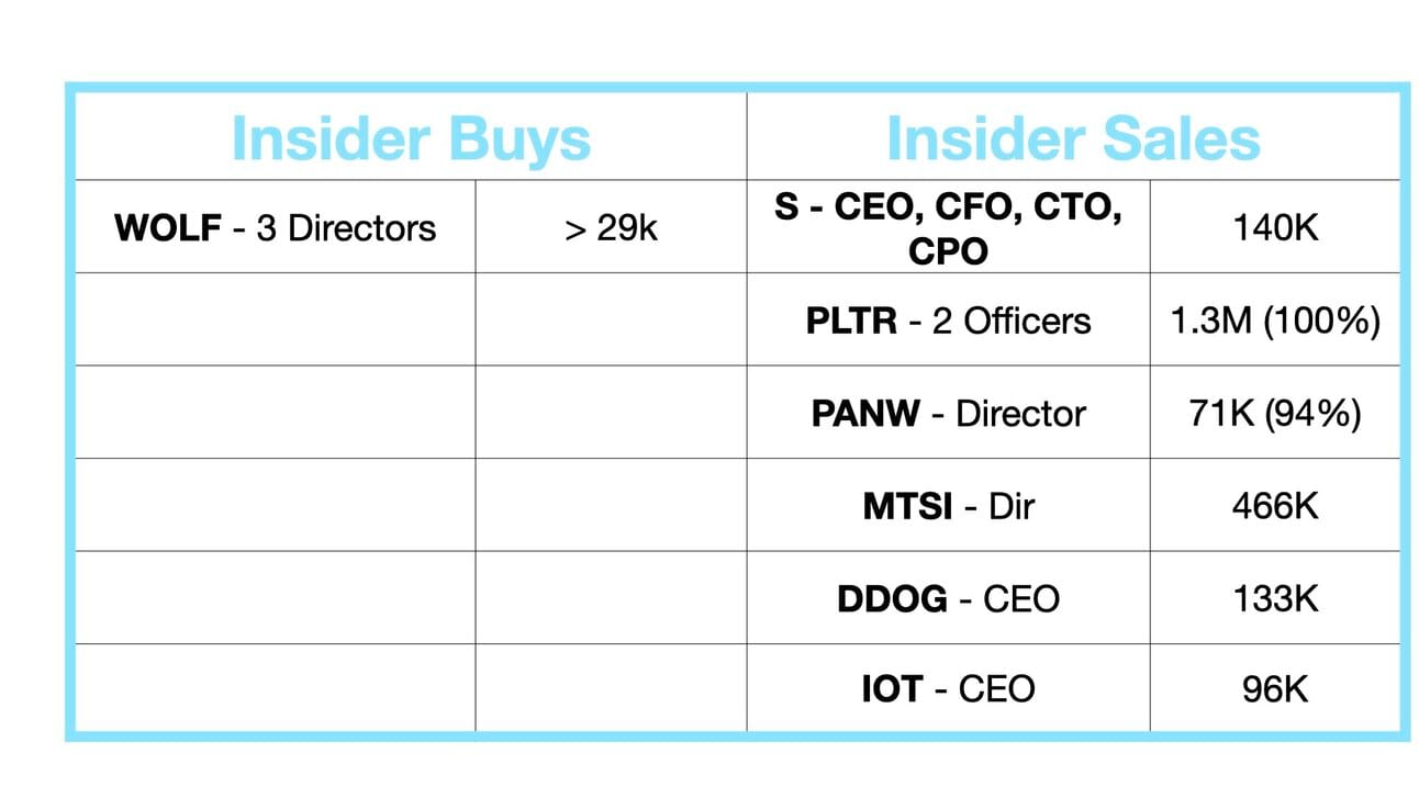 One PLTR executve sold 100% of his position and a director of PANW sold 94% of his position. It could mean both are retiring or moving onto greener pastures - but it’s worth asking the companies about the respective reasoning.