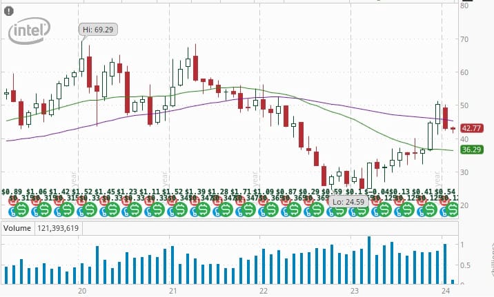 Judging by the 5-Year chart above, it appears that investors may be placing bets on a protracted rebound and recovery by Intel driven by massive AI data center needs over the next several years.